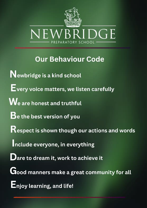 Newbridge Preparatory School believes that children flourish best when their personal, social and emotional needs are met and where there are clear and developmentally appropriate expectations for their behaviour. We think that praise should always be used as the greatest motivator. It is a primary aim of our school that every member of the school community feels valued and respected and that each person is treated fairly and well. This policy is intended to provide guidelines for high standards of behaviour in school. As such, it is intended to promote a learning environment in which all children can realise their potential. It is designed to ensure that positive behaviour is regarded as the norm and that it will be rewarded.